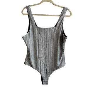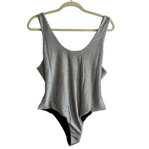 Kittenish Ribbed Black and White Vertical Stripe Bodysuit XL