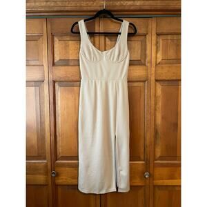Kittenish Women's Slit Front Bodycon Dress Sleeveless Solid Tan Size Medium