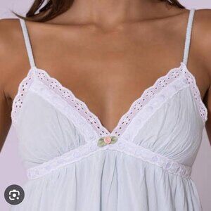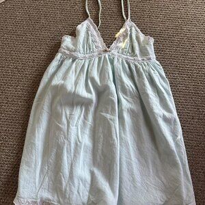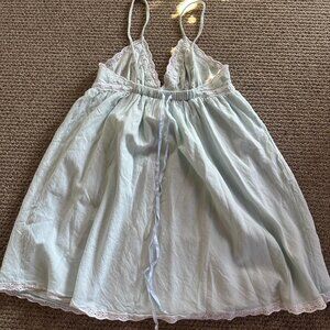 baby blue, slip dress, spaghetti straps, ruffled, lightweight, feminine, pastel, delicate, casual chic, minimalist