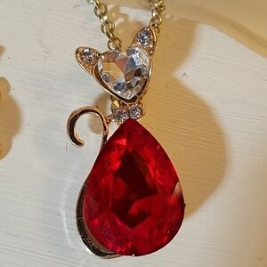 Kitty Cat Earring & Necklace Set of 2 Ruby Tone.