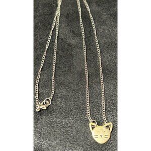 Kitty Cat Face with Pointy Ears Shaped Pendant Necklace | Animal Jewelry 18"