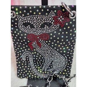 Kitty Cat Rhinestones Petite Phone Crossbody Purse