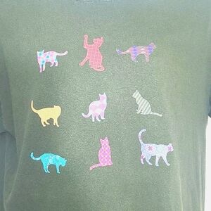 Kitty Cat Tshirt 100% Cotton Army Green XL Distressed pilled Soft Comfy