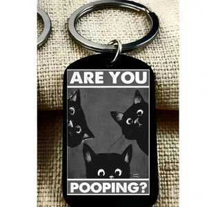Kitty Cat funny staring joke quote keychain