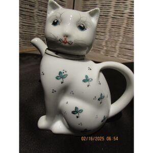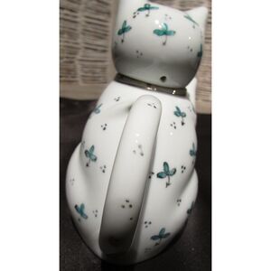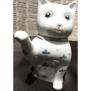 Kitty Cat small teapot creamer lucky vintage Chinese white with green flowers