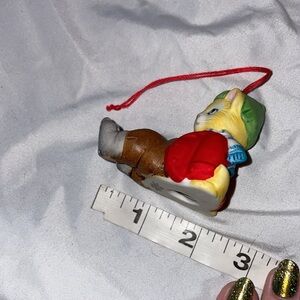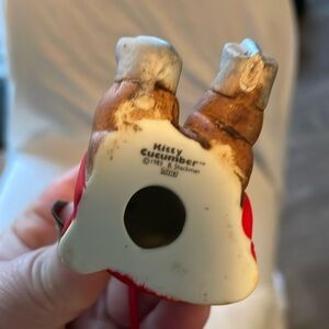 Kitty Cucumber Vintage Holiday Christmas Cat Ice Skater Ornament 1985 B. Shackman. Good preowned condition. String at top to hang. Feels like ceramic material. Kitty fell down. Cute winter gear wearing cat.