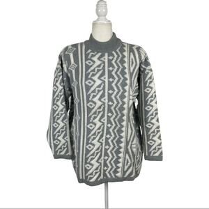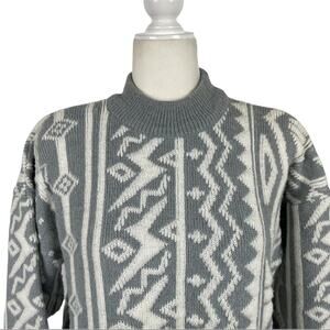 VTG Kitty Hawk Retro Mix Print 80s Pullover Knit Sweater with Shoulder Pads Size Medium