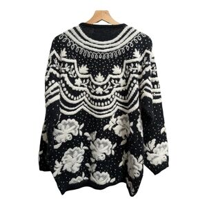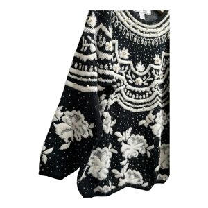 Kitty Hawk by Vivian Wang black white sweater pearls floral holiday vtg
