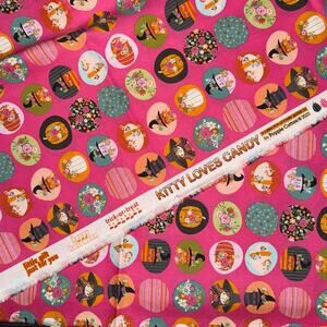 Add a touch of spooky sweetness to your creations with this adorable 'Kitty Loves Candy' fabric by Poppie Cotton! This fabric is sure to bring a smile to your face.