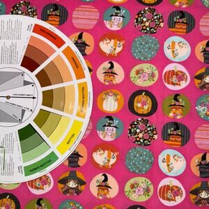 Perfect for Halloween-themed projects, this fabric features cute cats, pumpkins, witches, and flowers in a delightful pink color palette. Imagine the fun you'll have crafting quilts, decorations, or apparel with this charming design!