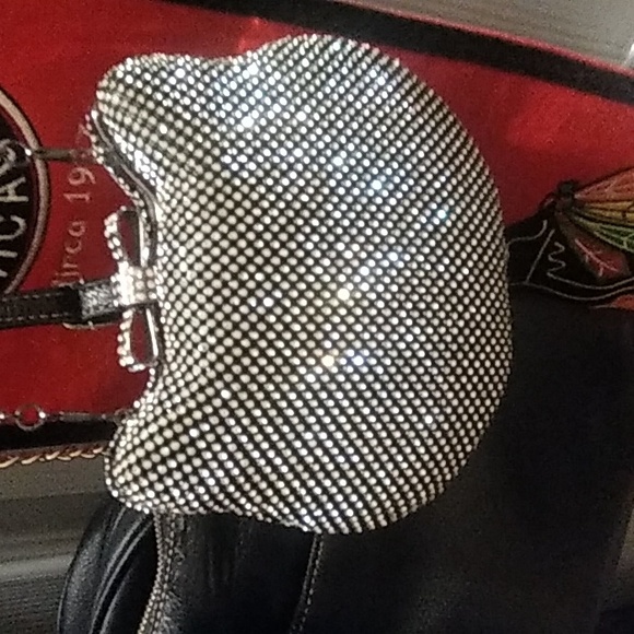 Adorable Kitty Purse from Forever 21 with rhinestones all over and a sparkly bow for the latch. Chain strap is 24 inches long. Not one stone missing!