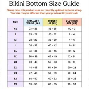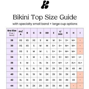 Features: Top: scoop size xs, can fit up to a C cup. Bottom: High waisted size M (2 larger booty). The size tag is missing on both pieces, so I did my best to compare to the size chart. Please let me know if you need additional measurements ahead of purchasing.