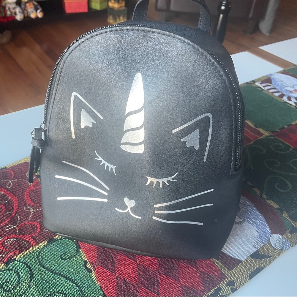 Adorable faux leather cat pack! One small scratch (pictured). Not very noticeable. 8.5wX9.5h