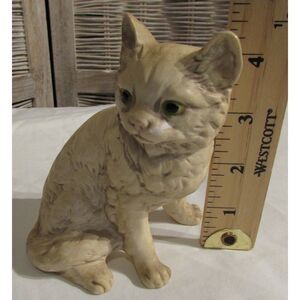 Kitty cat ceramic cream color green eyes vintage figurine