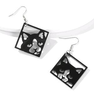 Kitty Cat Blue Black or Purple Square Geometric Dangling Hook Earrings