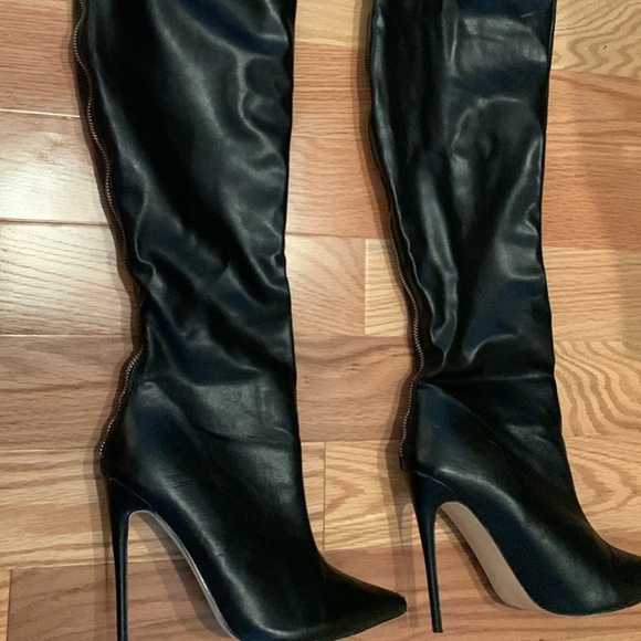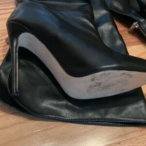 All black - zipper works great, only worn once. Size 7.5
