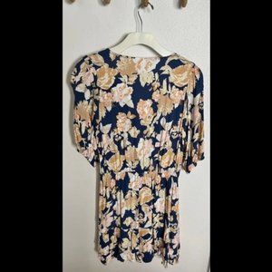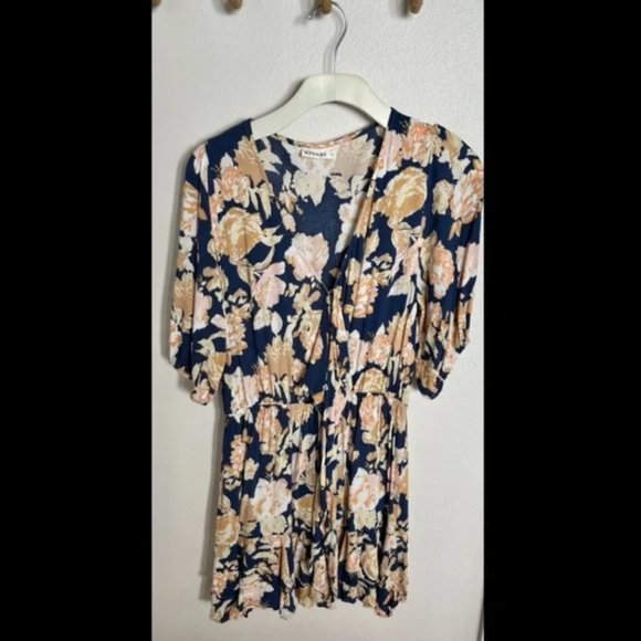Kivari Briar Floral Tie Front Mini Dress Navy Peach Tiered Medium