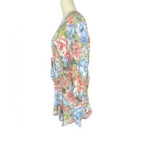 Cute little floral boho dress. Hook and eye closure and tie at front, tiered skirt, florals.