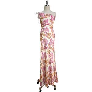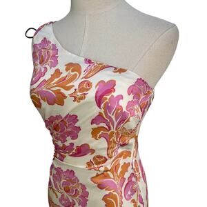 Kivari Josefina Maxi Dress Printed Pink Floral One Shoulder Party Cocktail Summer