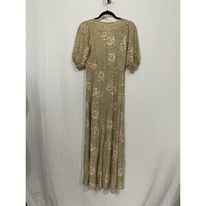 Kivari Lani Dress Midi Size Small Khaki Floral Short Sleeve Boho