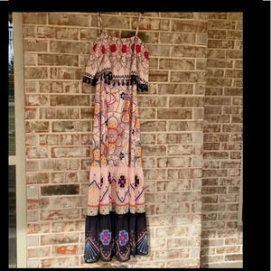 Kivenrl Geometric Floral Boho Ruffle Maxi Dress