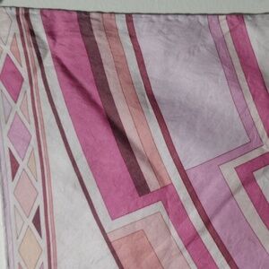This Kiwanda small scarf, measuring 17x17 inches, features a colorful pink design. Versatile enough to be worn as a bandana, it is in good condition, making it a stylish accessory for any outfit. Perfect for adding a pop of color and flair, this scarf showcases Kiwanda's commitment to quality and fashion. Ideal for both casual and formal occasions, it is a chic addition to any wardrobe.