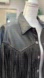 Chic black leather jacket featuring fringe and stud accents. Ideal for a bold look.