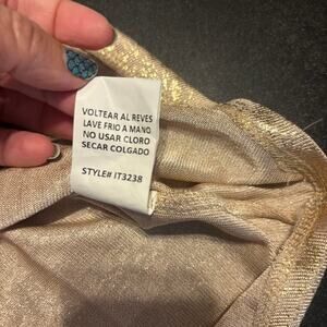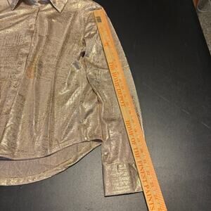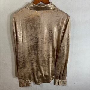 Kiwi Club Gold Metallic Polyester Blend Button Up Shirt Women's Size Small S