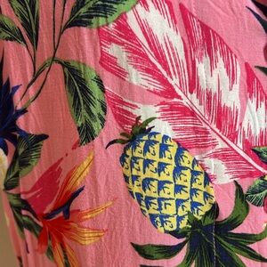 Kiwi Fresh Tropical Button-Up Blouse | Size 1X | Pineapple & Floral Print
