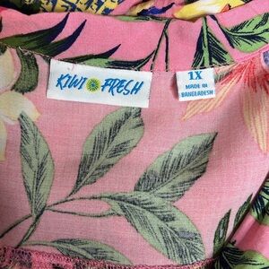Kiwi Fresh Tropical Button-Up Blouse | Size 1X | Pineapple & Floral Print