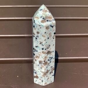 3 1/4" Polished Lotus Kiwi Sesame Jasper Carved Point Wand Tower.