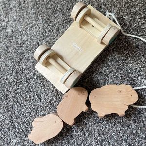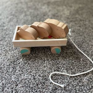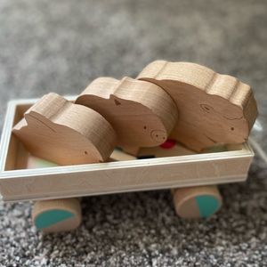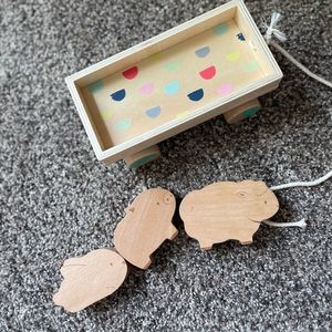 KiwiCo wooden pull wagon with wooden animals. Like new.