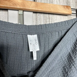 Kiyo Pants Lagenlook Bohemian Pull On Tapered Leg Gray Color Size L