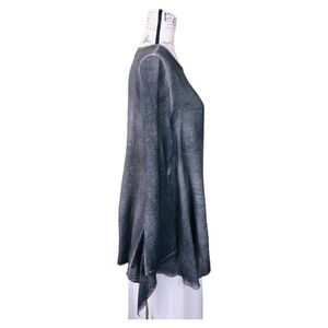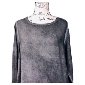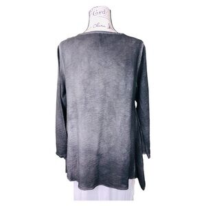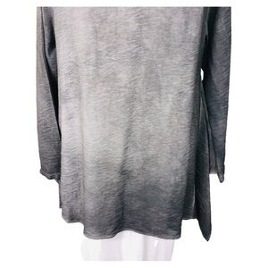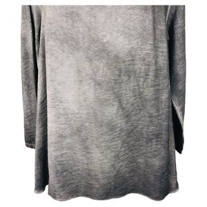 Kiyo Womens Gray Ruffle Blouse Size Medium Long Sleeve Round Neck Lightweight