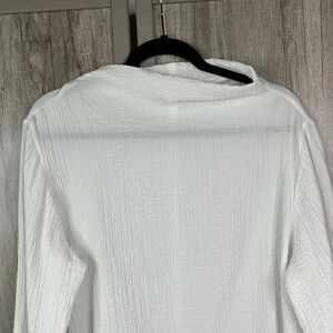 Kiyo White Top Blouse Artsy Lagenlook Long Sleeves Made in USA Sz M