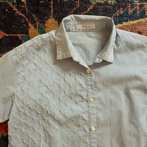 Kiyoko Takase Japan - Blue White Cropped Button-Down Shirt, With a Twist! - XS S