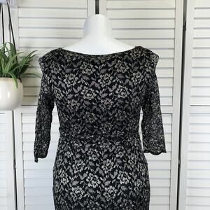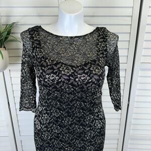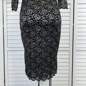 Kiyonna Black Gold Metallic Floral Lace Lined Sheath Dress