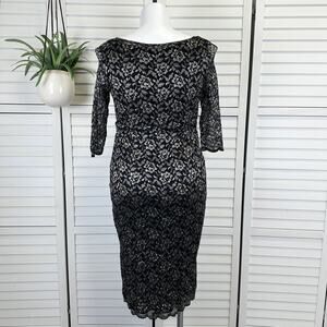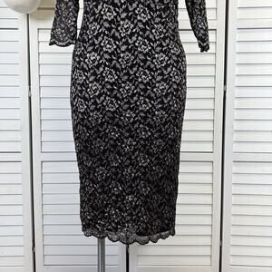Kiyonna Black Gold Floral Lace Lined Sheath Dress Party Cocktail Plus Size 1X