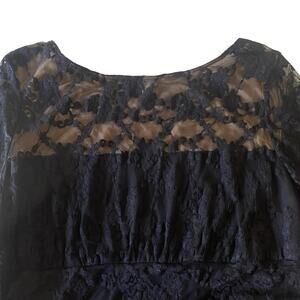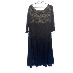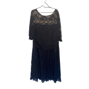 Kiyonna Black Lace Overlay Women's Dress Size 4 Sheer Sleeves Cocktail Evening