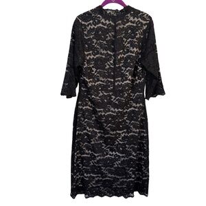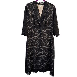 Kiyonna Black Nude Lace Dress 1X Plus Size Scalloped V-Neck Midi Cocktail Party