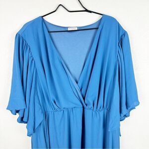 Kiyonna Blue Short Sleeve Formal Dress Above Knee Length Size 4X V-neck