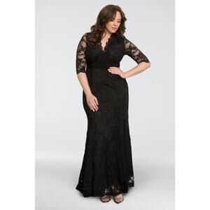 Kiyonna Dress Maxi Black Lace Screen Siren 1X Gown Party Lined Sexy Whimsigoth