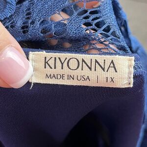 Kiyonna Dress Womens 1X Navy Blue Lace Maxi Gown Pockets USA Wedding Guest