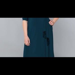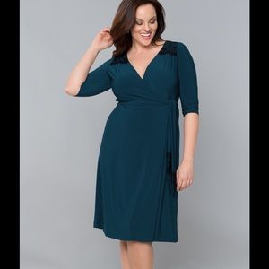 Beautiful wrap dress with lace on shoulders. Fabric: 95% Polyester, 5% Spandex.