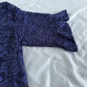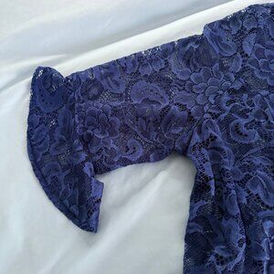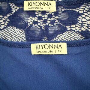 Pretty blue lace cocktail midi dress by Kiyonna. Gently worn once. Lining is a separate slip dress to wear under the lace outer dress. Bell sleeves.From a smoke/pet free home.