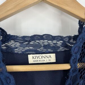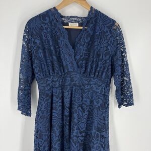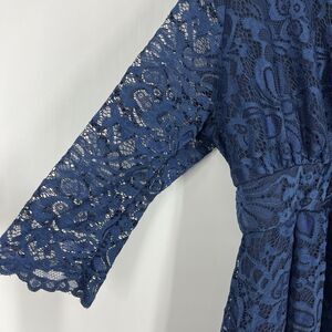 Kiyonna Mademoiselle Lace Dress Size XL Navy Cocktail Half Sleeve Cocktail Midi