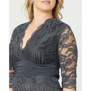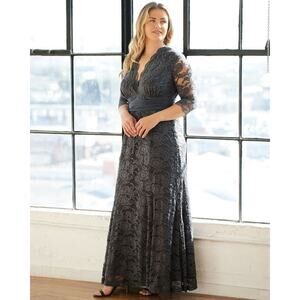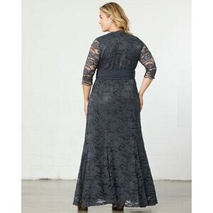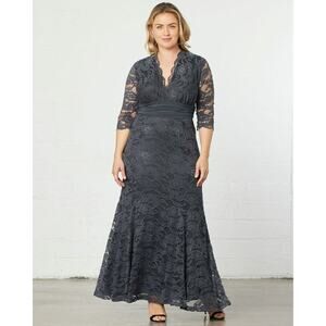Kiyonna Maxi Dress Gown Gray Lace Screen Siren Style 2X Empire Waist Slimming