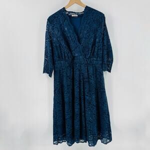 Kiyonna Meadow Dream Maxi Dress Topaz Blue Plus Size 2X Like New