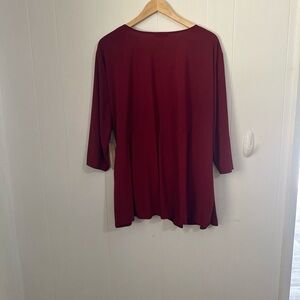 Kiyonna Red Asymmetrical Wrap Blouse 3/4 Sleeve