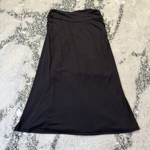 Kiyonna Skirt Womens Size 1/0X Black Ruched Ponte Knit Midi Stretch Lined